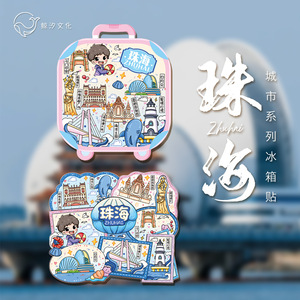 珠海木造国潮お土産文創プレゼント観光記念品創意ランドマーク観光スポット都市冷蔵庫貼り