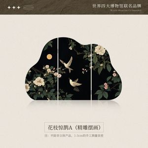 中古風花鳥装飾画フランス式テレビキャビネット置物レトロ玄関キャビネットサイドキャビネット折りたたみ可能屏風小置物絵