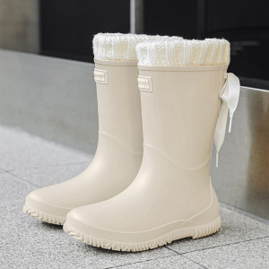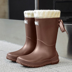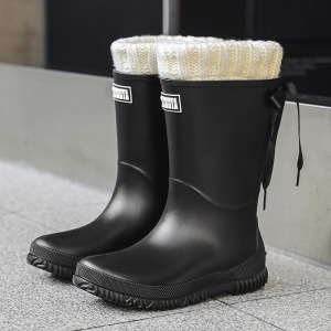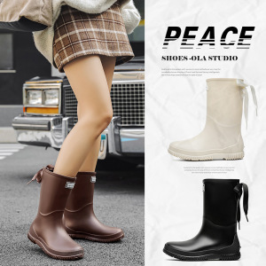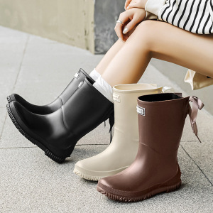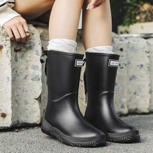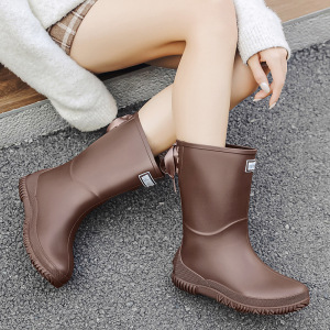 日韓クロスボーダー現物レディース中筒雨靴ファッション新型雨靴アウトドア水靴軽やか防水滑り止めゴム靴
