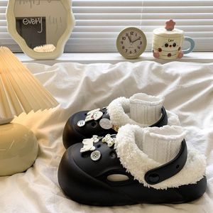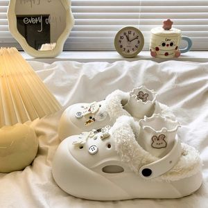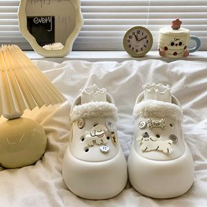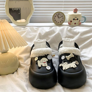 卡通可爱加绒洞洞鞋女2025新款秋冬外穿保暖厚底包头半拖鞋棉鞋子