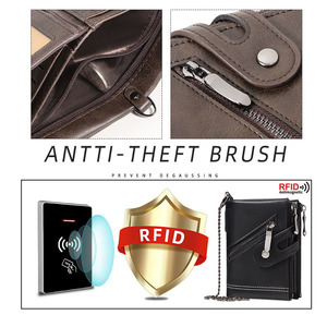 男性チェーン財布RFID盗難防止男性革財布ダブルジッパーゼロ財布男性クレジットカードバッグ