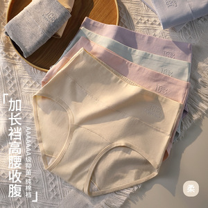 純綿ハイウエストライトベリーコントロール女性下着 7A 抗菌拡張股尻シンプルなヒップリフティング大きいサイズの三角ショーツ