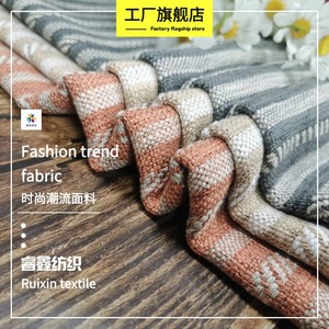 新品ポリエステル綿竹節ジャカードストライプ生地450g復古色ストリップ生地抱き枕色織ストライプ生地