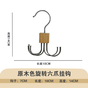 クロスボーダー六爪フック家庭服店服帽子ベルト収納フックマフラーリングケヤキフック実木ハンガー