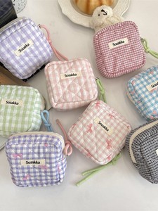 3922キルティングコットン格子収納衛生バッグ小銭袋ミニ化粧バッグ鍵雑物学生小包