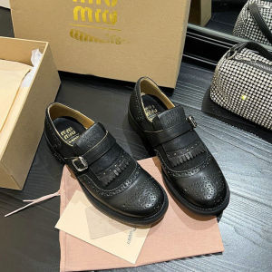 炸街款!莞产高端纯原英伦风复古流苏雕花皮带搭扣小皮鞋乐福鞋女