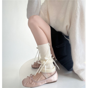 春の夏のキャンディー色の薄いタイプのバレエ風の甘い靴下のカバーの女性のピンクの青い蝶結びの山の足のカバーの少女の靴のカバー