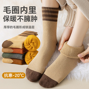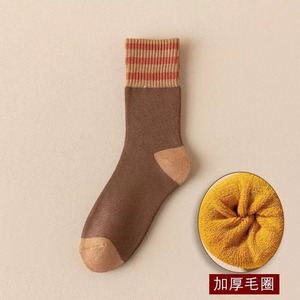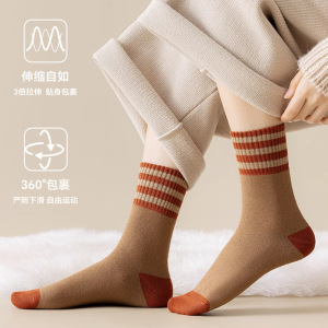 三棒のストライプの靴下の女性の秋冬のベルベットの厚い保温靴下は足の靴下の綿の靴下を凍らせません。