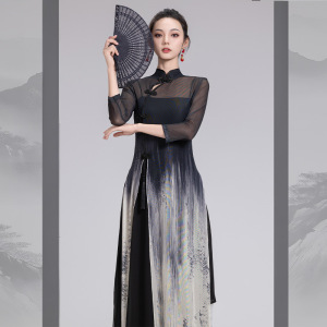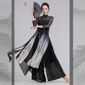 クラシックダンストップ女性のパフォーマンス服エレガントな新しい中国風の水墨画ダンスガーゼ袍服