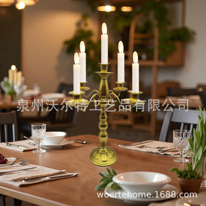 三頭五頭のヨーロッパ式燭台の結婚祝いの置物のろうそくの夜の食卓の鉄芸の見本の部屋はろうそくの装飾品の金属を飾ります。