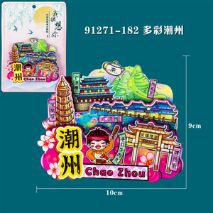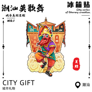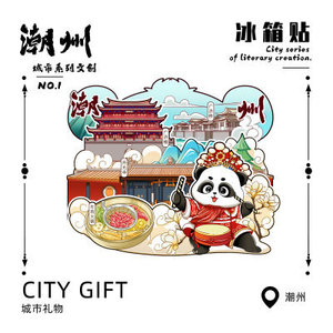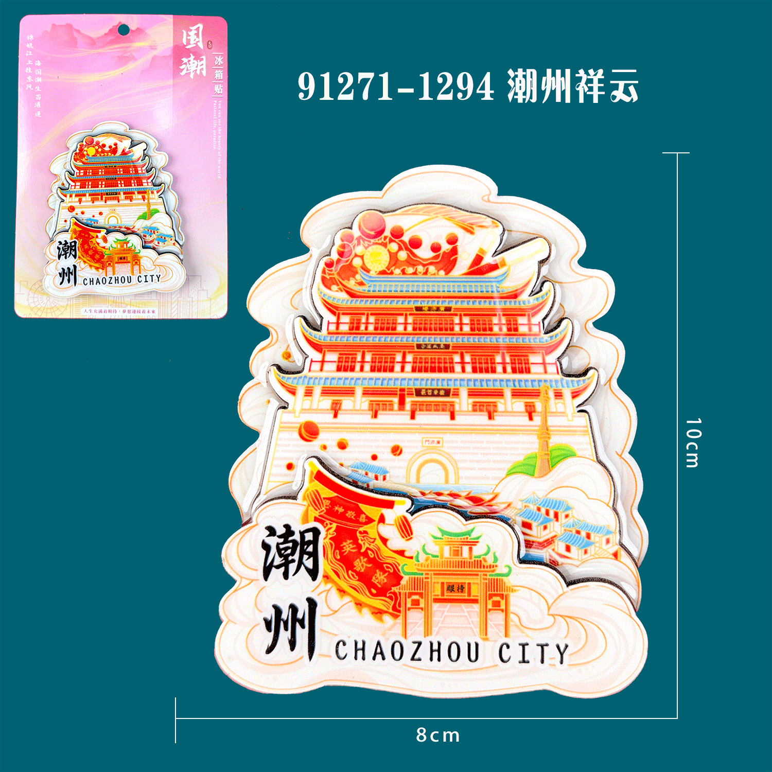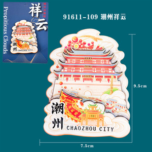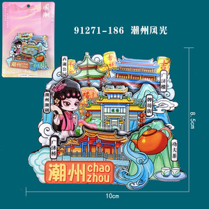 潮州汕頭シリーズ冷蔵庫貼り創意国潮木質磁力貼り都市ランドマーク文創観光記念品