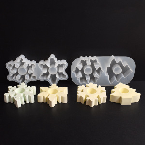 雪花燭台石膏金型クリスマスツリー雪花長棒ろうそく台ベース石膏燭台滴ゴムシリコン金型