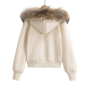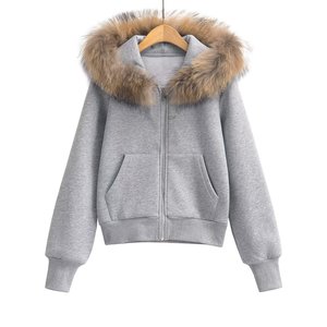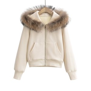 24冬の新型女性欧米風ファッションは毛襟とベルベットの純色と帽子の長袖ジッパーのコートを取り外すことができる