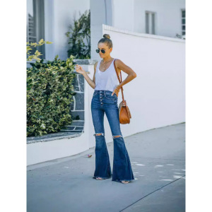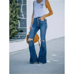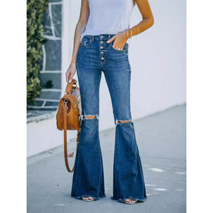 欧米風レトロクロスボーダー秋冬新作ファッションカジュアルウォッシュ加工ダークデニムブーツカットパンツレディース即納2025