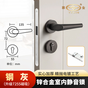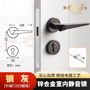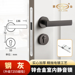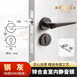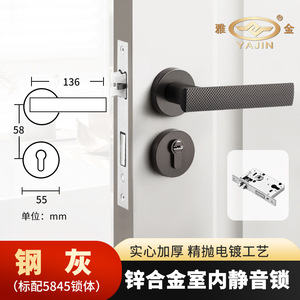 北欧風亜鉛合金寝室一体静音ロック現代シンプルで厚いドアノブ室内家庭用木製ドアロック
