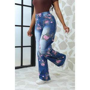 アマゾンのハイウエストの新型プリントデニムパンツハンサムなストレートの花柄があります。