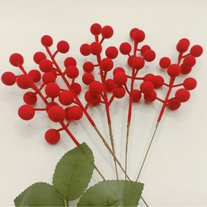 新款防冬青果仿真植绒十二叉红果圣诞春节婚庆