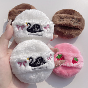 秋冬の長い毛の散るパフのブラックスワンの大きいサイズの手作りの車はパフの散る粉の専用の絨毛を縫います。