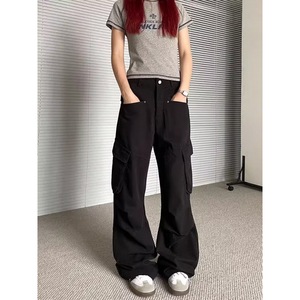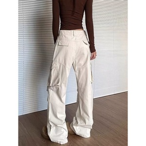 莫狂少年アメリカ復古米白色多ポケット工装ズボン