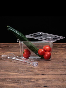 プラスチックの数鉢の麻辣热は野菜のたらいの透明なアクリルの長方形の野菜の箱を選んで野菜のたらいの展示棚の大きいサイズを注文します。