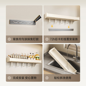 クリーム風厨房多機能棚壁掛け式穴なし調味料家庭用品大全刀棚収納棚