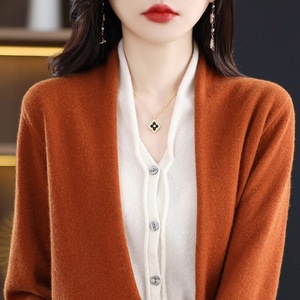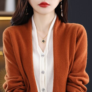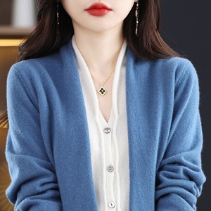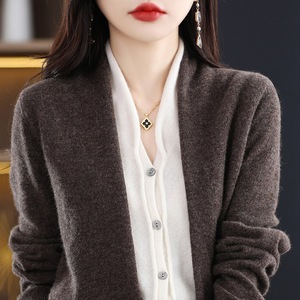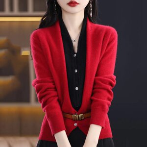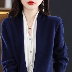 秋冬の新型の偽の2つのウールのカーディガンの女性vネックのニットの底のコートのセーターの長袖の底のシャツのゆったりしているファッション