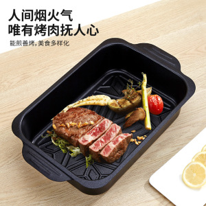 家庭版焼き魚皿長方形家庭用厚手電磁ストーブ焼き魚専用焼き皿深皿トレイは皿にくっつかない