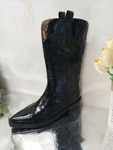 フランスの白黒の色合わせのv口の刺繍の西部のカウボーイの靴の丸い頭の太さと筒のサイズのコードの欧米の女性のショートブーツ