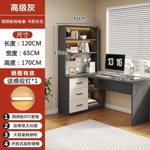 高級グレー有孔ボードコーナーテーブル/右本棚