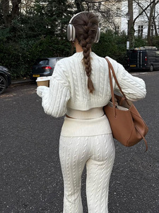 2024欧米の国境を越えたシンプルなカジュアルな長袖スポーツ上着の高腰ズボンセーターの3点セットの女性