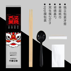 使い捨て箸四点セットの外食ホテル料理屋家庭用無洗箸プラスチックスプーンメーカー卸売り
