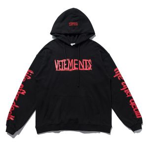 クロスボーダー秋冬新作VTMアルファベットプリント洗水男女ゆったり帽子付きパーカー