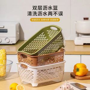 新製品の野菜を洗うたらいの水たまりの台所の二重濾過の果物と野菜のかごの家庭用のプラスチックのかごは果物を洗って野菜のたらいを洗います。