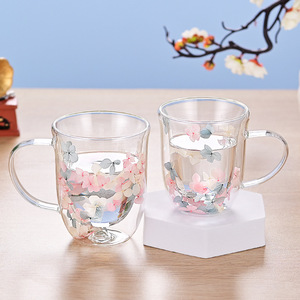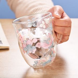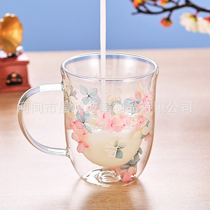 家庭用高ホウ素シリコン断熱カップジュースカップ永生花二重牛乳グラスお土産高颜値グラス