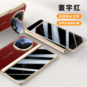 Huawei Mate X6に適した電気メッキプレーンレザー携帯電話ケース、レンズホルダー、ヒンジ、オールインクルーシブX5落下防止シェルとフィルム一体型