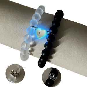 欧米の人気カップルのピンクのビーズのブレスレットの愛の青い磁石の磁気はバレンタインデーのアクセサリーのガラスのアクセサリーを吸います。