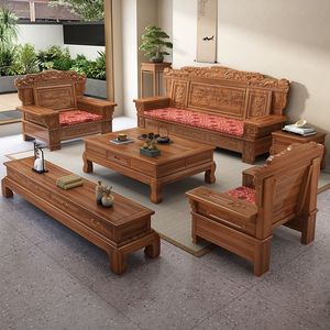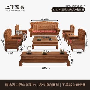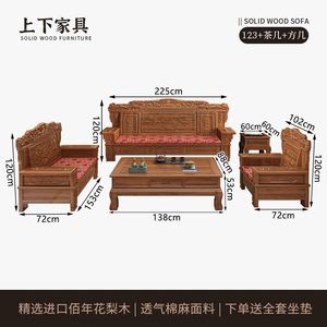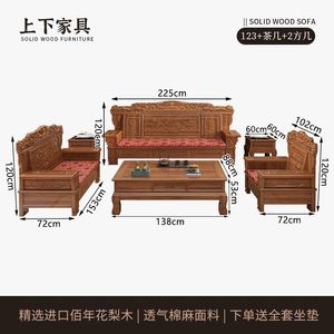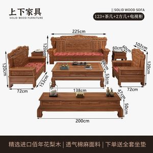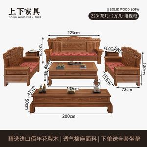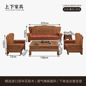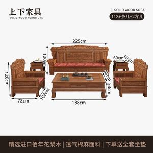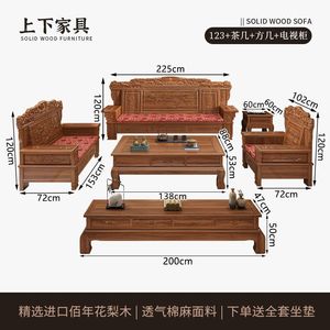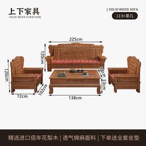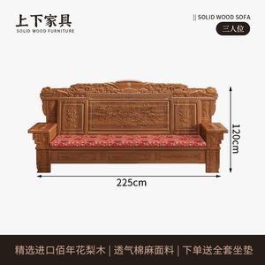 雕花明清古典冬夏两用农村中式花梨木实木沙发组合客厅仿古小户型