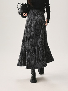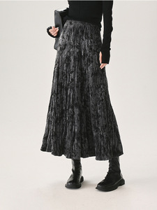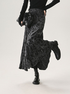 しわの筋肉感のベルベットの半身のスカートの女性の2024秋冬の新型の高い腰はやせているファッションの厚い傘のスカートのa字のスカートを現します。
