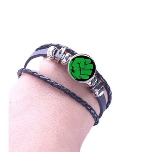 マーウィスーパーヒーローバッジアメリカのキャプテンスーパーマンスパイダーマンフラッシュマン緑の巨人宝石牛革ブレスレット