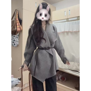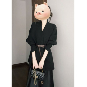 女性の秋冬の新型の純色の気質の長袖はゆったりしています。