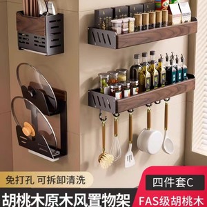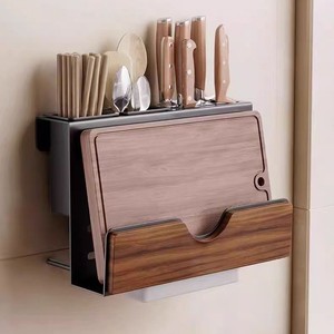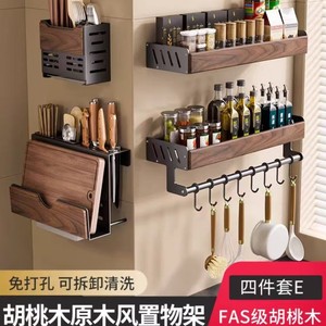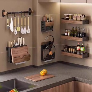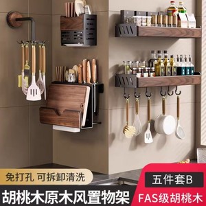 中古風胡桃木厨房物置棚多機能調味料穴なし収納棚箸スプーン刃物セット