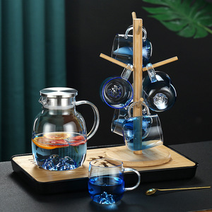 観山壺 観山壺 冷水壺 冷水ポット 大容量 ガラス製 花茶ポット ジュースポット 耐熱 グラデーションカラー