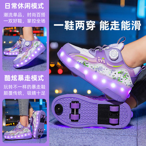 クロスボーダー子供暴走靴二列四輪ledライト発光板靴男女スケート靴学生レジャー運動靴