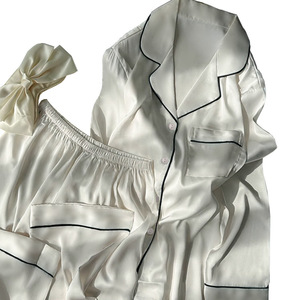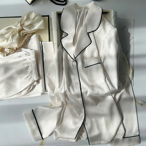 純色のシンプルな氷の女性のパジャマ春と秋の長袖の小さい大衆のプリントの家庭服の2つのセットは実際に卸売りをたたきます。