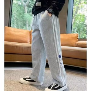 男児春秋衛ズボンの中の大童ズボン2024の薄いタイプの子供の運動のストレートなズボンの百合の3バーのズボンの潮流