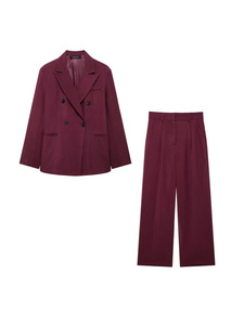 外国貿易INS秋の新作婦人服欧米風アンコラレッドダブルブレストスーツジャケットスーツパンツセット