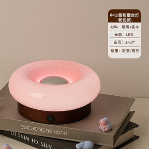 ネット赤insドーナツタッチ電気スタンドバウハウス設計寝室ベッドの雰囲気ランプ実木充電電気スタンド