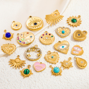 クロスボーダーステンレス鋼ジュエリーアクセサリー 18 k ゴールド手作り DIY 悪魔の目ペンダントニッチ色保持アクセサリー女性のための