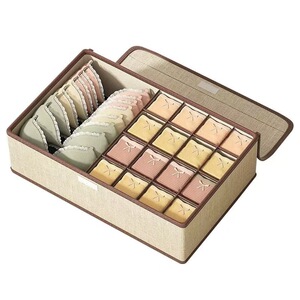 綿麻下着収納ボックス蓋付き家庭用下着靴下収納ボックス布芸分格三合一ブラジャー整理ボックス