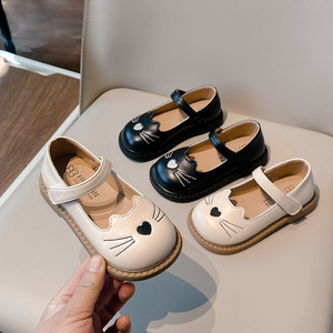 2025春の新型の女の子の王女の靴の韓国版の赤ちゃんの小さい靴の柔らかい底の中小の子供の漫画の猫の豆の靴の潮